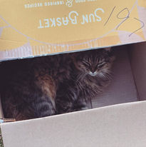 That day, we realized Catniss wasn’t going to be the kind of kitty who craved constant attention. She’s an independent girl who does things on her own terms—much like her namesake, Katniss from The Hunger Games. While she’s very sweet and occasionally enjoys some pets and love, she’s a bit aloof. She can usually be found lounging on the porch in the dog yard, either relaxing in the shade or sunbathing.